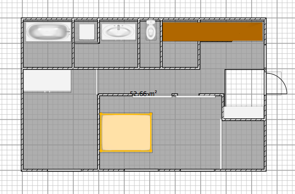 将来的に赤線のところで間仕切ると右側の部屋が狭いーー