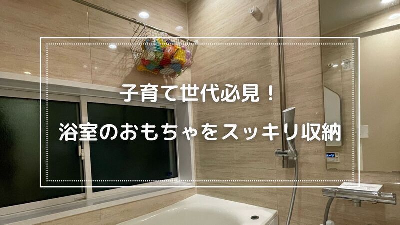 おもちゃを収納するネットなども売っていますが、個人的にはステンレスのバスケットの方が浴室の手すりや干し竿と質感が合うので、統一感が出てオススメです!