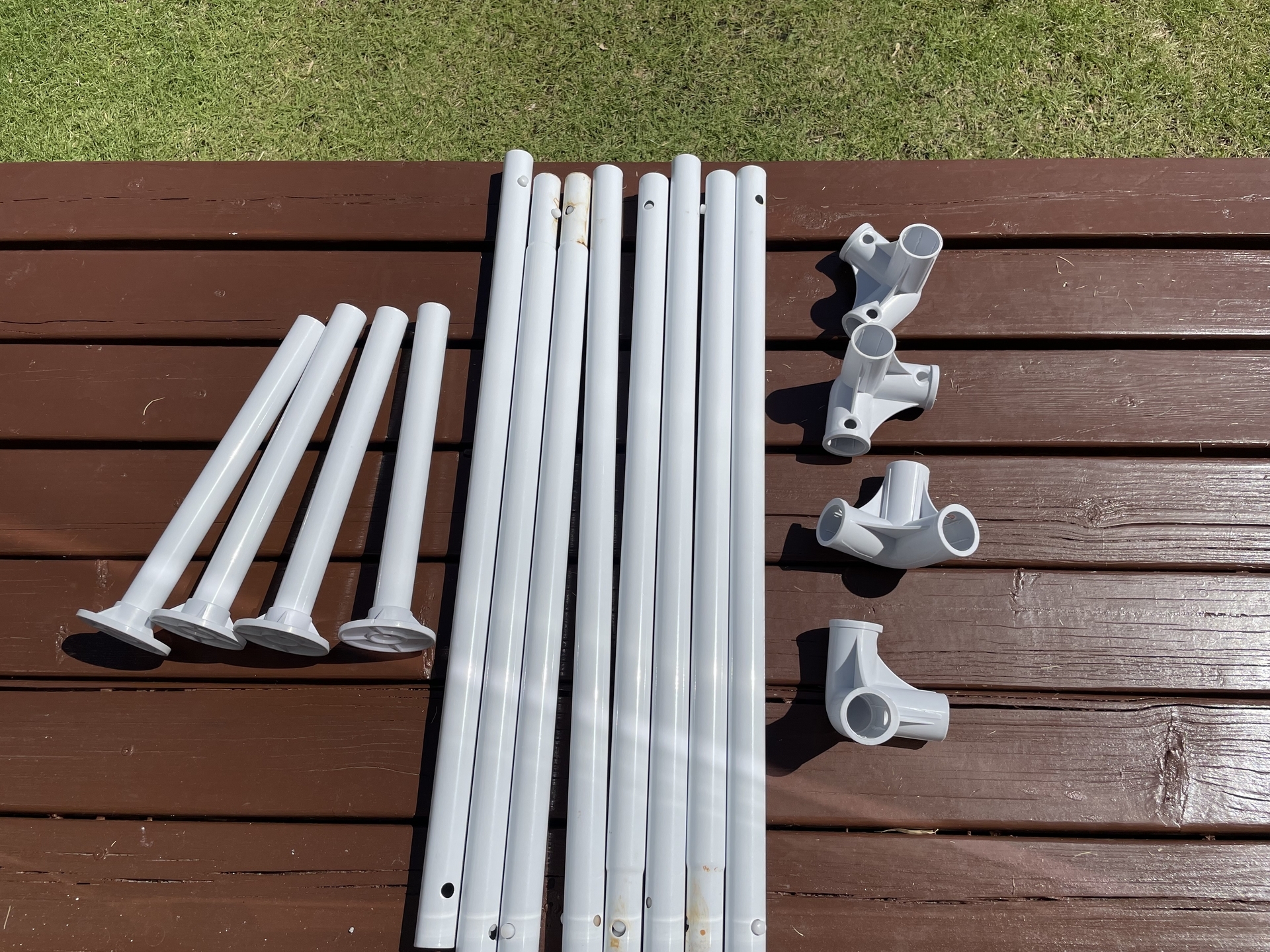組み立てに必要な部品は概ね写真の通りで、これに加えてプールのビニール部分があります。
