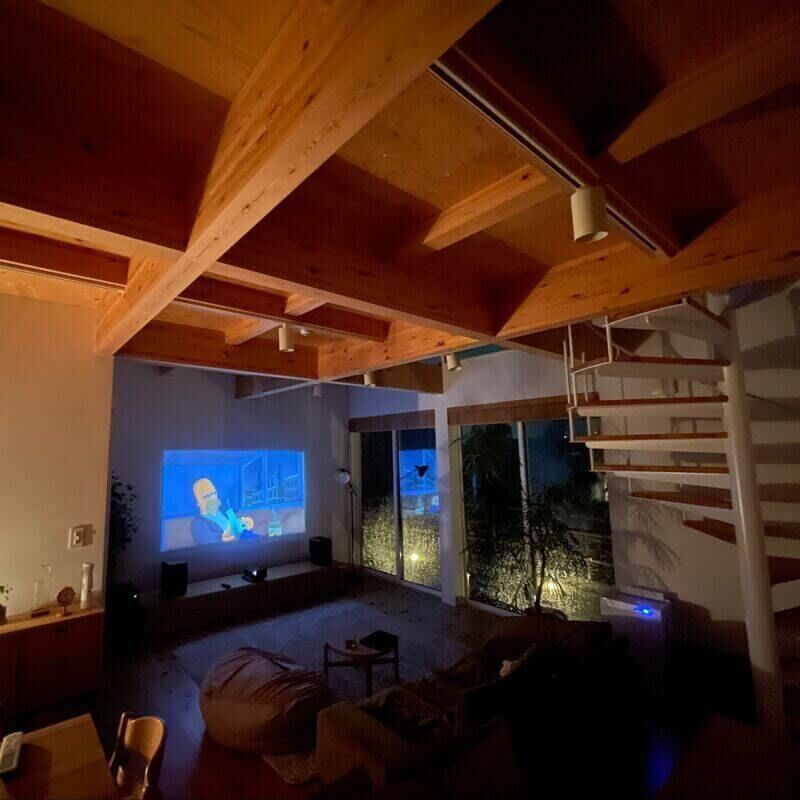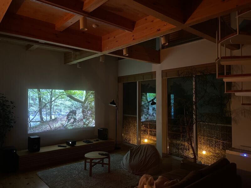 雨が降っていない日でも、プロジェクターで焚き火や海の映像を投影して環境音を楽しむことも多いので、僕にとっては雨音も心地良く聞こえてきます🙌