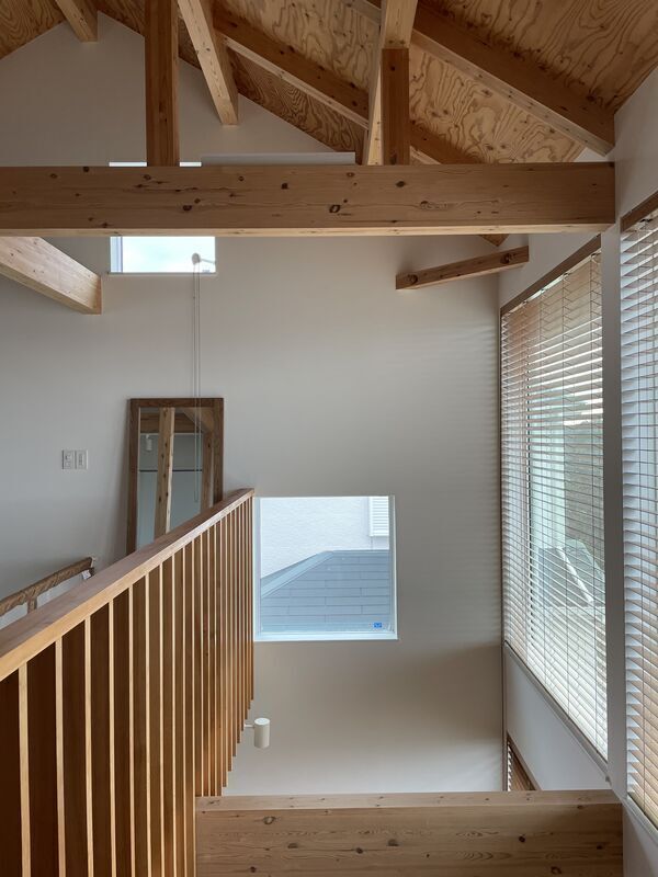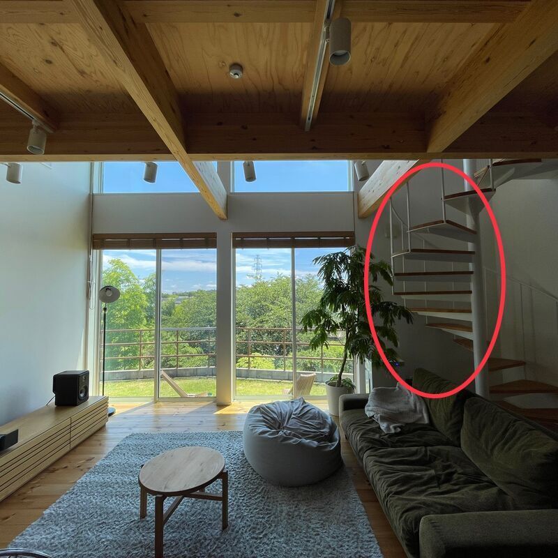 なので吹き抜け部分の窓からリビングの一部分が見えてしまっていることに完成後に気がつきました😭