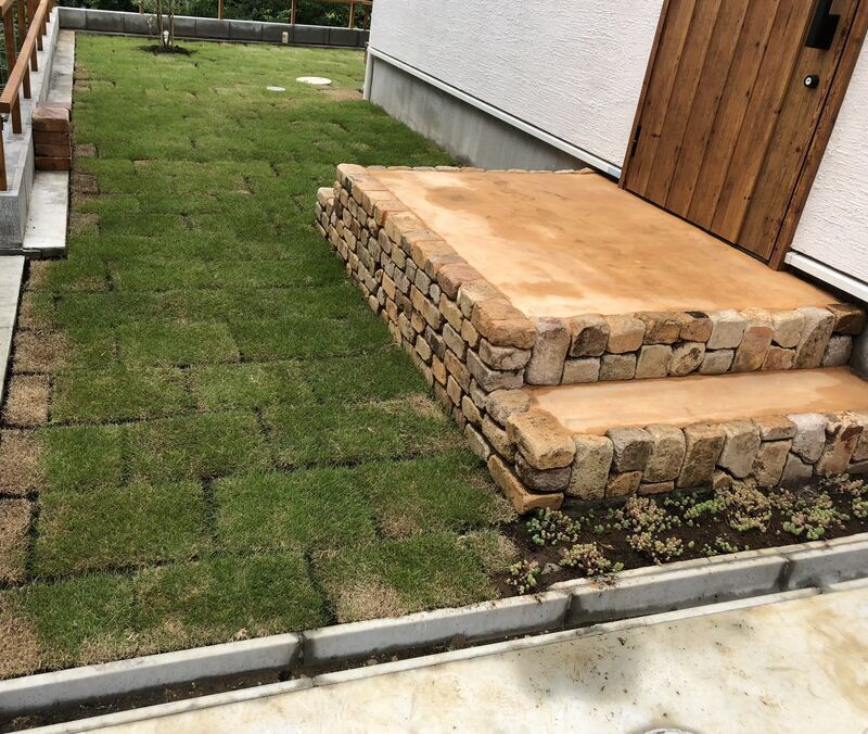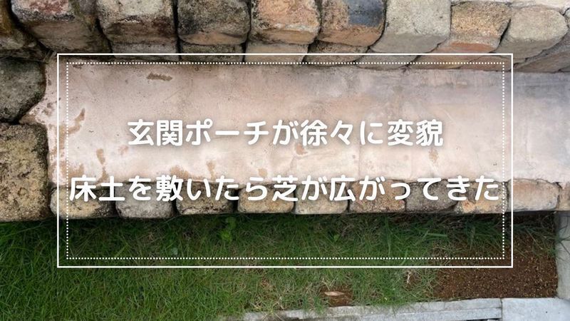 話はだーーーいぶ変わって、今回は玄関ポーチに敷いた床土に芝が張ってきたという話をしたいと思います😆