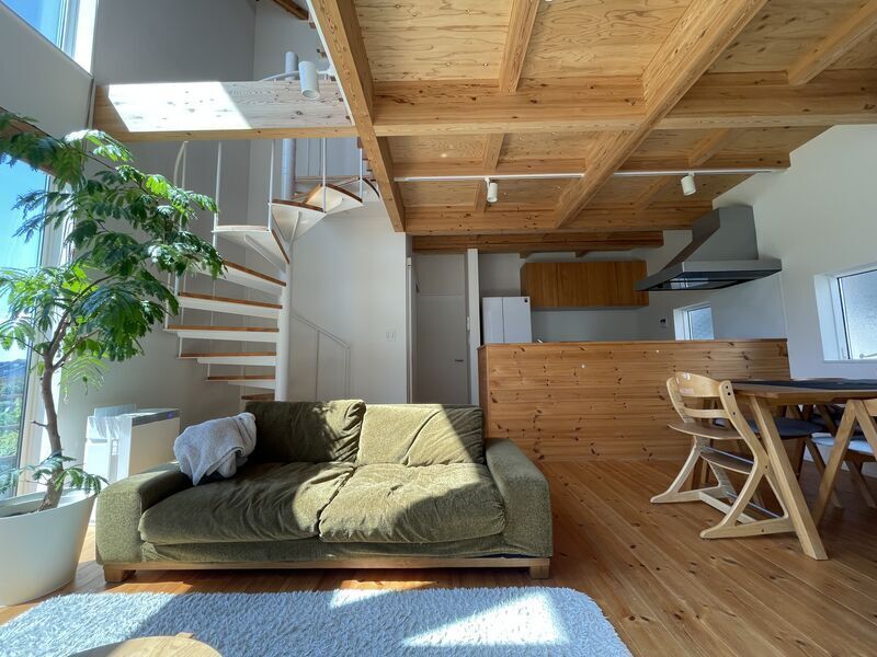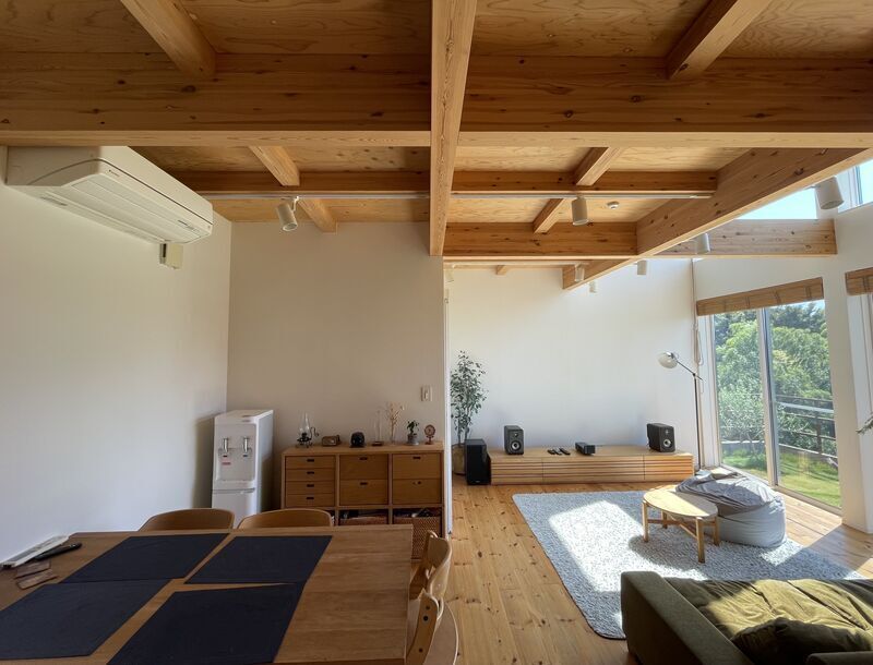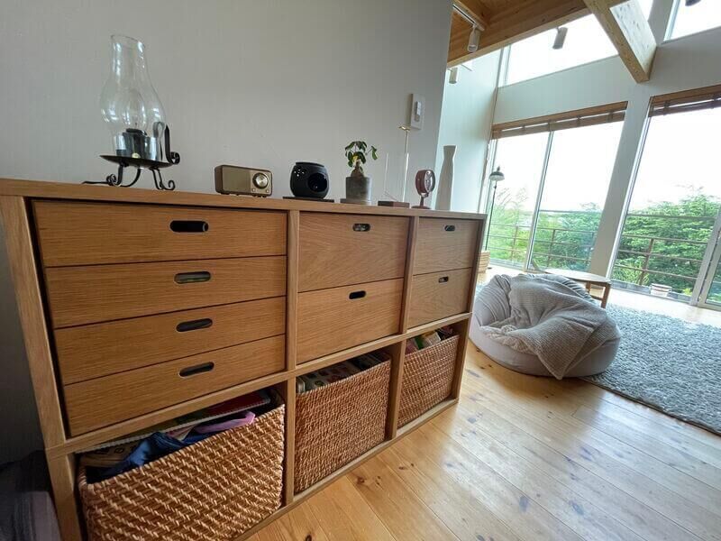 また、わが家の場合は天井が2700mmあるので、背の低い家具を選ぶことで天井と家具の高低差が際立ち、より一層空間が広く感じますね!