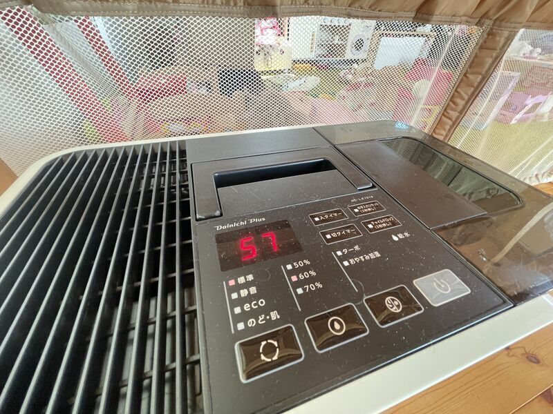 湿度を60%に設定すると、2階の加湿器は湿度57%を示しています🙌