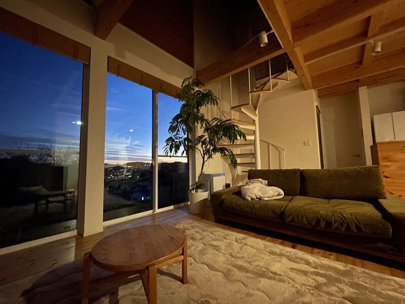 日が落ちてくるとソファのオリーブ色も落ち着いた色合いになります😌