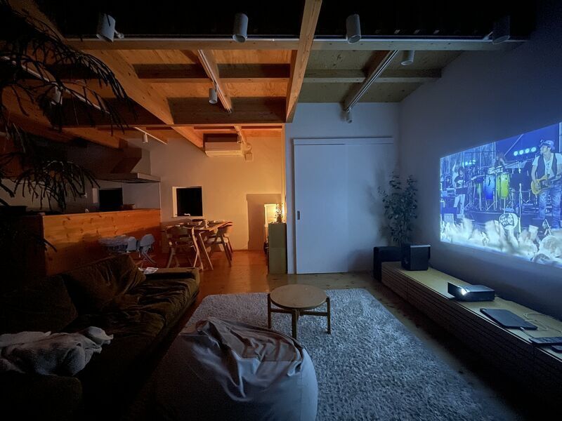 深みのある落ち着いた色になるからこそ、照明を絞ってプロジェクターを投影した時にはこれまた上手く空間に溶け込んでくれます😌